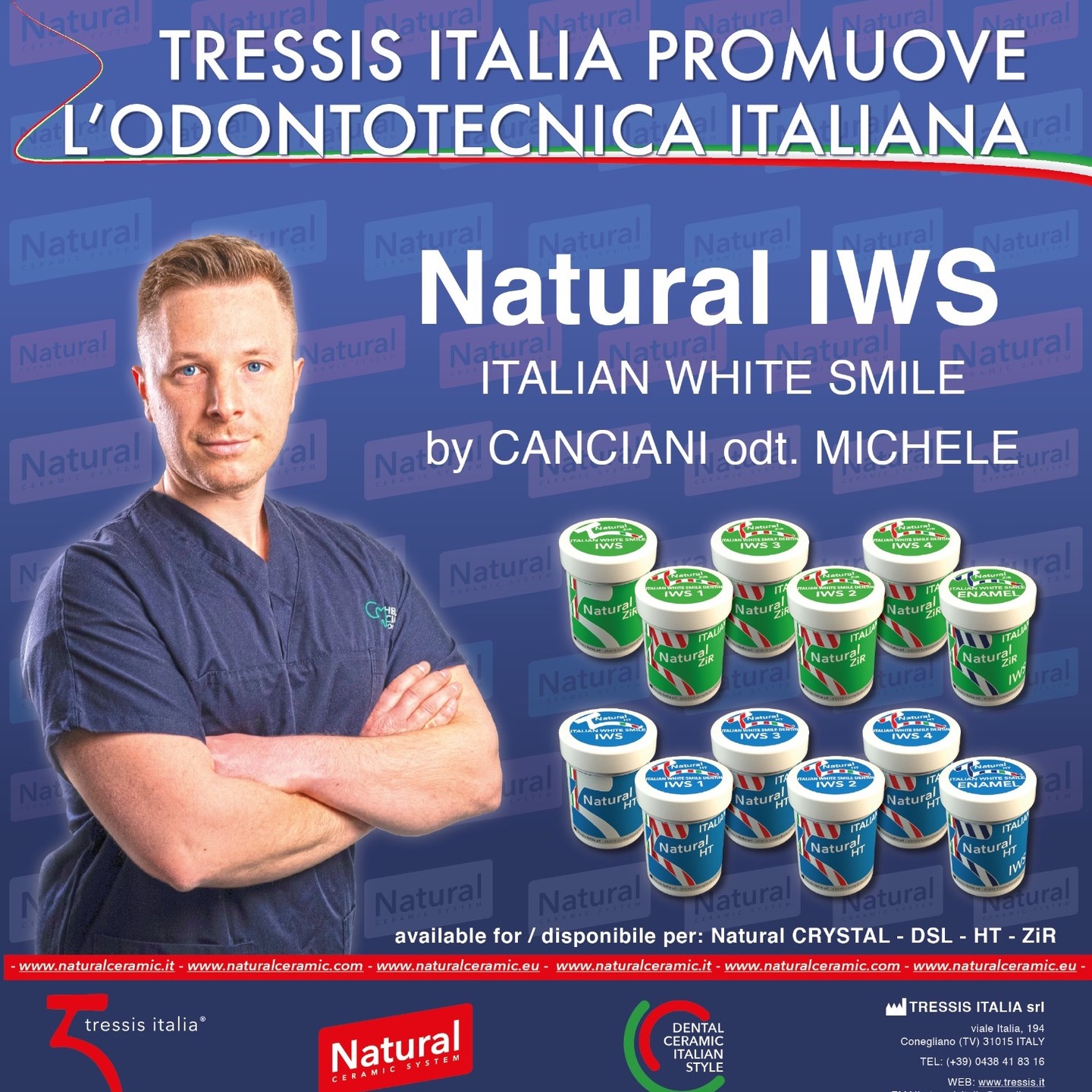 Il sistema IWS è composto da 5 masse ed uno smalto, ad alto impatto estetico, ensate per dare ai restauri un tocco di freschezza e vitalità. Sono tonalità chiare, ideali per creare sorrisi giovani. , Colori vivi, brillanti, naturali e fluorescenti, capaci di restituire naturalezza e luminosità ai sorrisi senza risultare artificiali. Disponibili sia per la stratificazione su zirconia che per la metal-ceramica. Sono disponibili anche in versione pasta, Crystal IWS Ceramic Paste, per la micro-stratificazione su monolitico per zirconia e disilicato, per un "effetto estetico stratificato", anche ai restauri monolitici. Il sistema IWS è compatibile con tutte le linee ceramiche Natural Ceramic System, per integrarsi facilmente nei protocolli di lavoro già in uso e mantenere continuità cromatica e tecnica. .